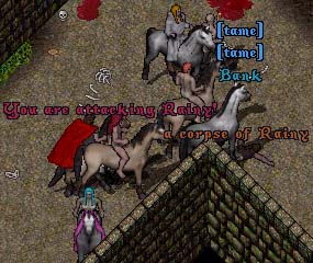 私は敵陣の中に突っ込んで馬降り(ターゲットしずらくさせる)